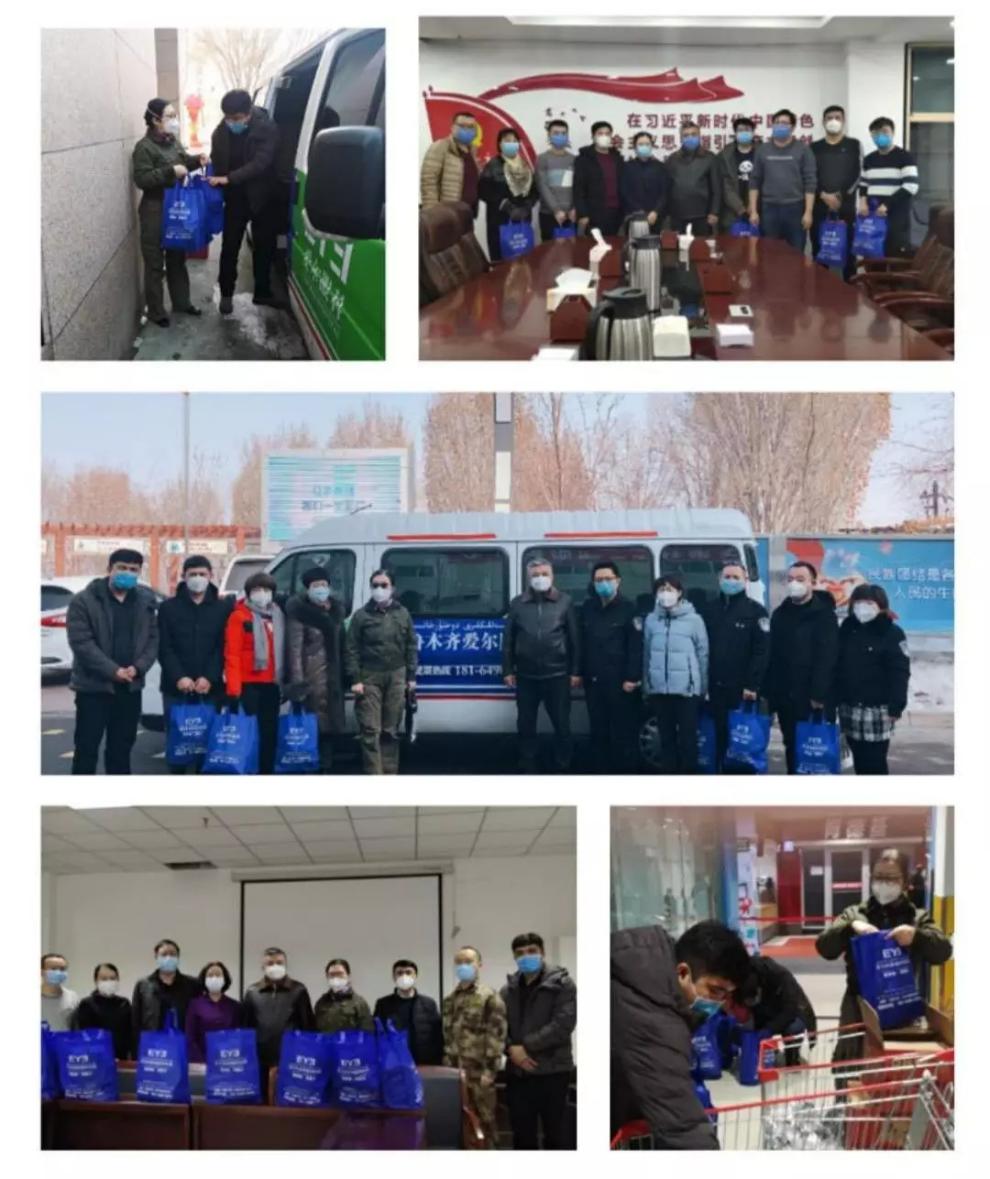 2月9日,爱尔阿迪娅眼科医院在市委统战部副部长、市侨联党组书记帕尔哈提.沙来,市侨联王观主席的带领下,我们带着医院准备的慰问品到了沙区防疫指挥部。来到这里才知道,大家为了做好社区防疫工作,已经不知多少天没有回家,天天吃着泡面,拼着板凳休息。虽是艰难但是没有一人有抱怨,每个人都希望能在防控疫情的工作上贡献一份力量。