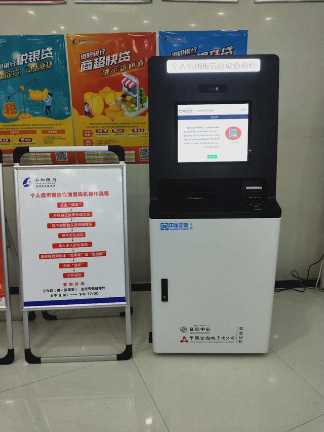 2020年4月1日,洛阳银行焦作分行已将个人信用报告自助查询机在老城区域的民主路支行正式投入使用。自助查询机的使用,拓宽了个人信用报告查询渠道,同时也简化了个人信用报告查询手续,缩短了业务办理及等待办理的时间,避免了查询过程人为操作失误的问题,为客户带来了极大地便利。