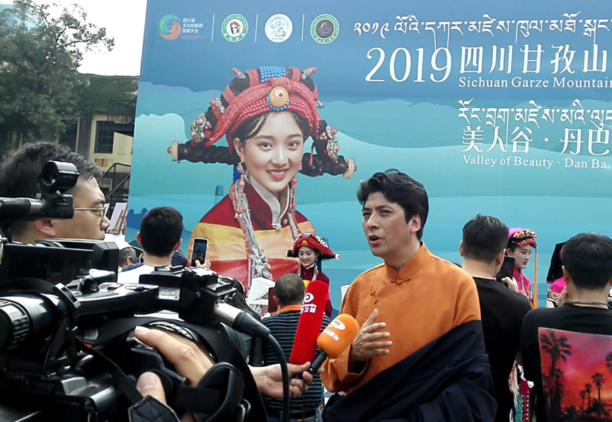 2019年,刘洪参加甘孜山地旅游节时接受媒体采访。(受访者供图/图)