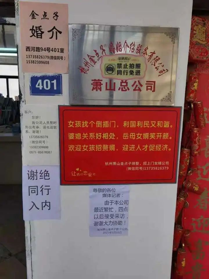 钱江晚报·小时新闻记者走访了杭州萧山一家名为金点子的婚介所,过去21年来,它专以介绍上门女婿为特色。3月10日,小时新闻客户端报道一发出,就把这家婚介所顶上了热搜。