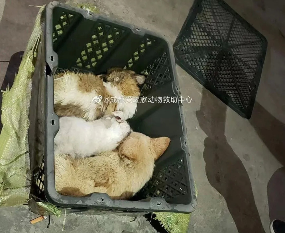 盒子里都是快递运输途中堆积的屎尿,小奶狗在盒子里瑟瑟发抖,似乎是叫了很多天,声音都哑了。