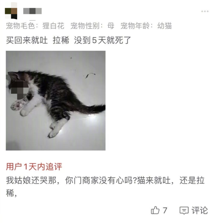 宠物盲盒的评论区,不少人收到的宠物都没能活过一星期。