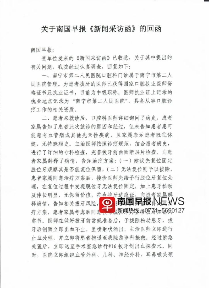 对于家属的质疑,5月29日,南宁市第二人民医院给记者发来了书面答复。