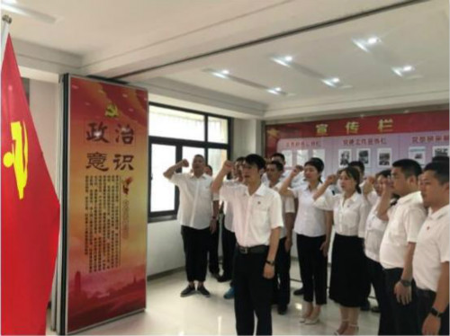 “我志愿加入中国共产党,拥护党的纲领……”“七一”来临之际,信州烟草组织全体党员重温入党誓词。面对鲜红的党旗,全体党员庄严宣誓,感悟